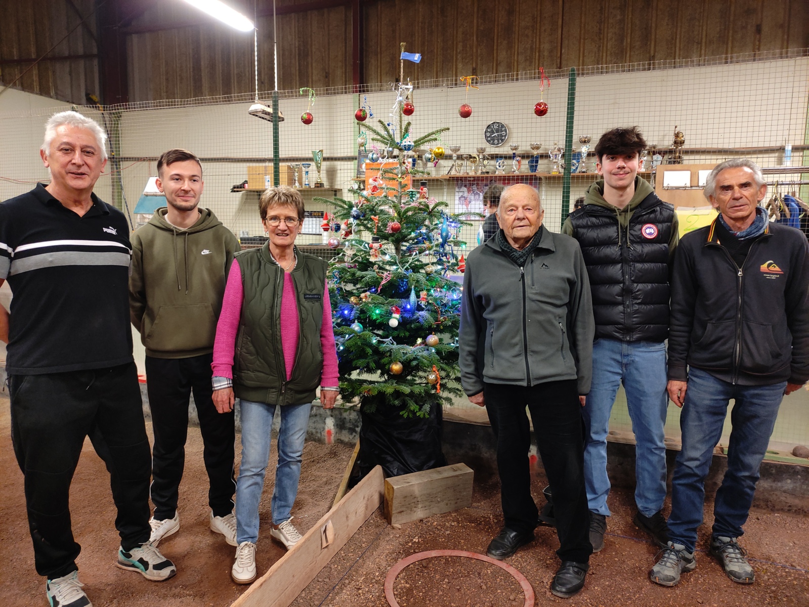 Un samedi pas comme les autres, le Président Sylvain CLERGET, avec Jacky ALBOUY? avaient bien fait les choses, après un après-midi organisé de main de maître, une réception a rassemblé une bonne partie du Club afin de terminer l'année sur une note conviviale et joyeuse. Rien n'a manqué, de l'apéro aux desserts, avec des décors de circonstances, (merci mesdames Marie-Claude et Françoise) tout y était pour cette soirée d'avant Noël, la musique ambiante permettait même aux amateurs d'effectuer quelques pas de danse entre deux plats. Oublié le peu de boules manquées de l'après-midi. Encore merci à tous et bravo pour tout.
